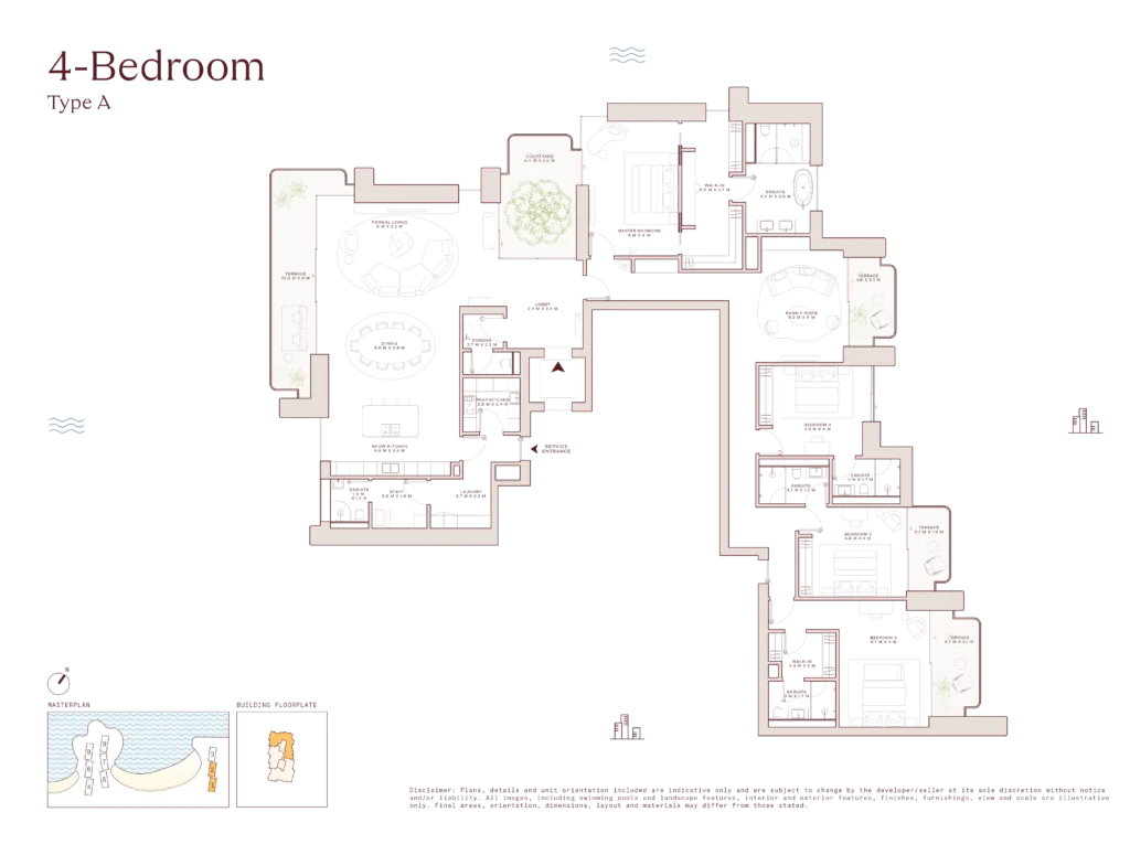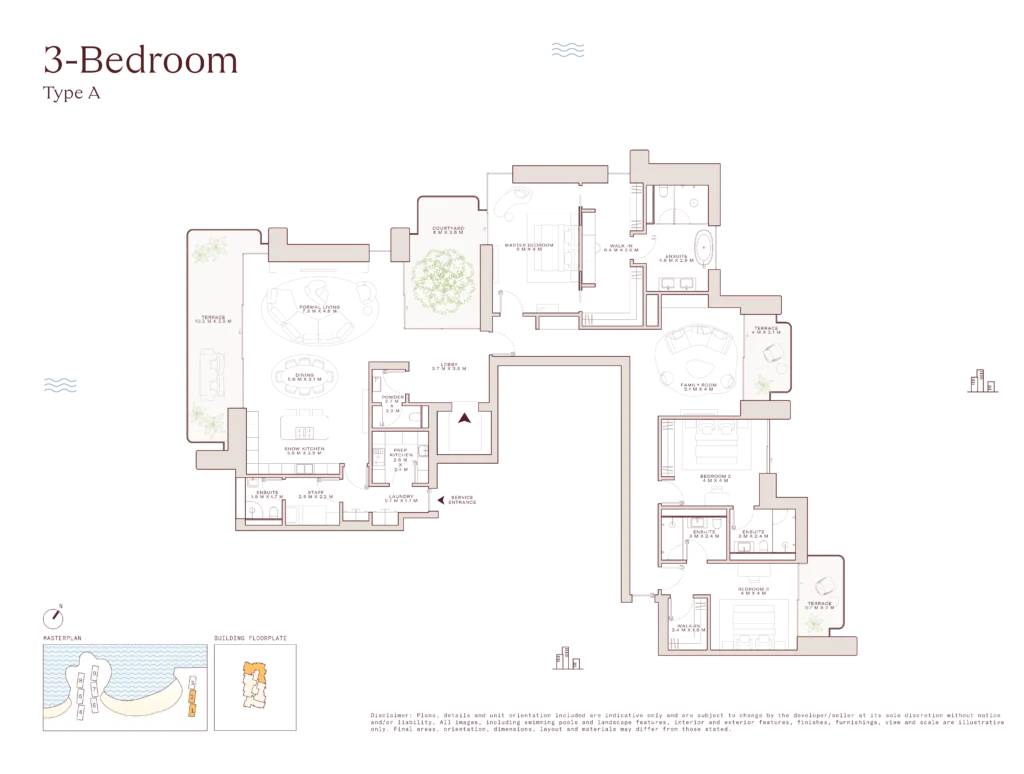 - Wellness & Recreation – Fitness studio, spa and treatment rooms, yoga deck, pools, curated gardens, and a central Beach Park.